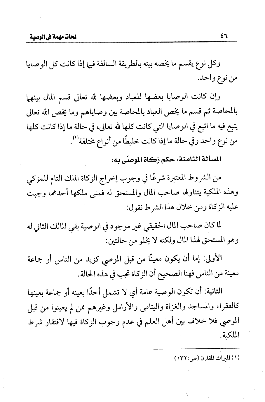 الثانية: أن تكون الوصية عامة أي لا تشمل أحداً بعينه أو جماعة بعينها كالفقراء والمساجد والغزاة واليتامى والأرامل وغيرهم ممن لم يعينوا من قبل الموصي فلا خلاف بين أهل العلم في عدم وجوب الزكاة فيها لافتقار شرط الملكية.