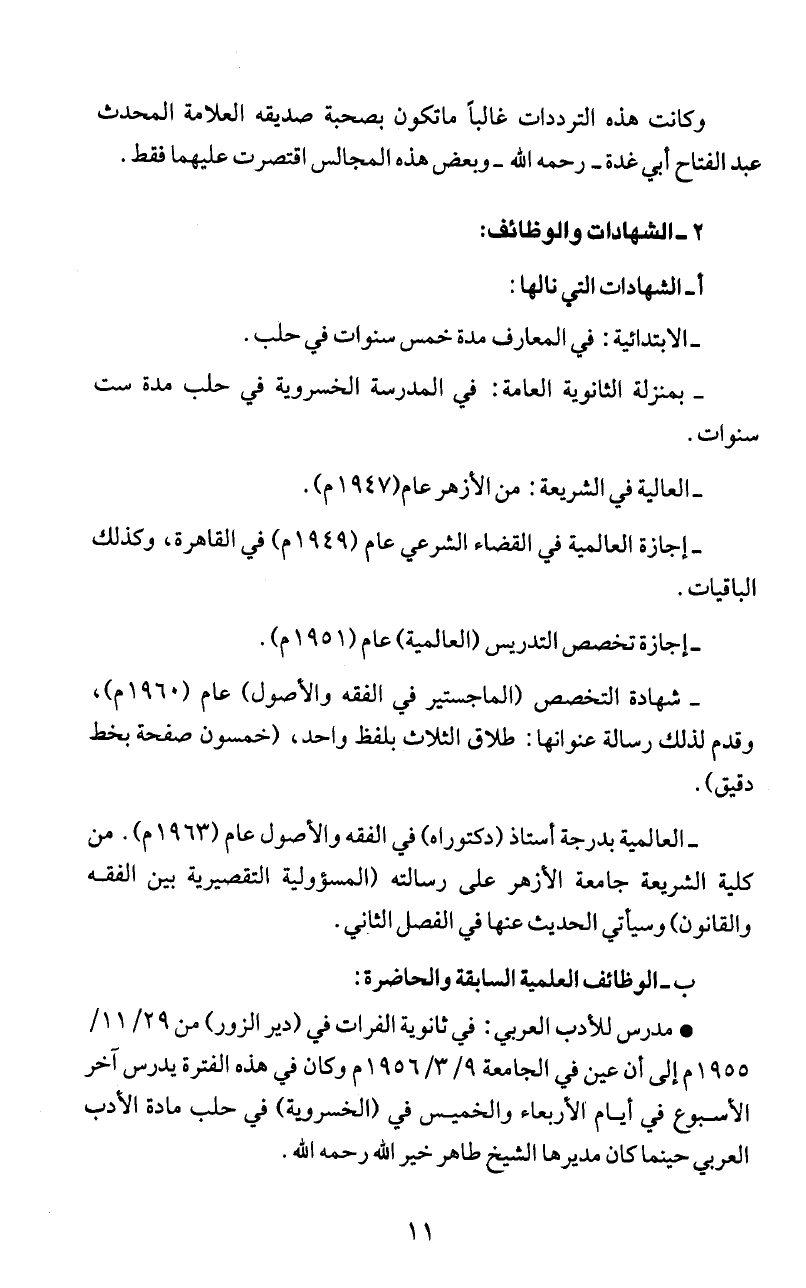 - إجازة تخصص التدريس (العالمية) عام (1 95 1 م).