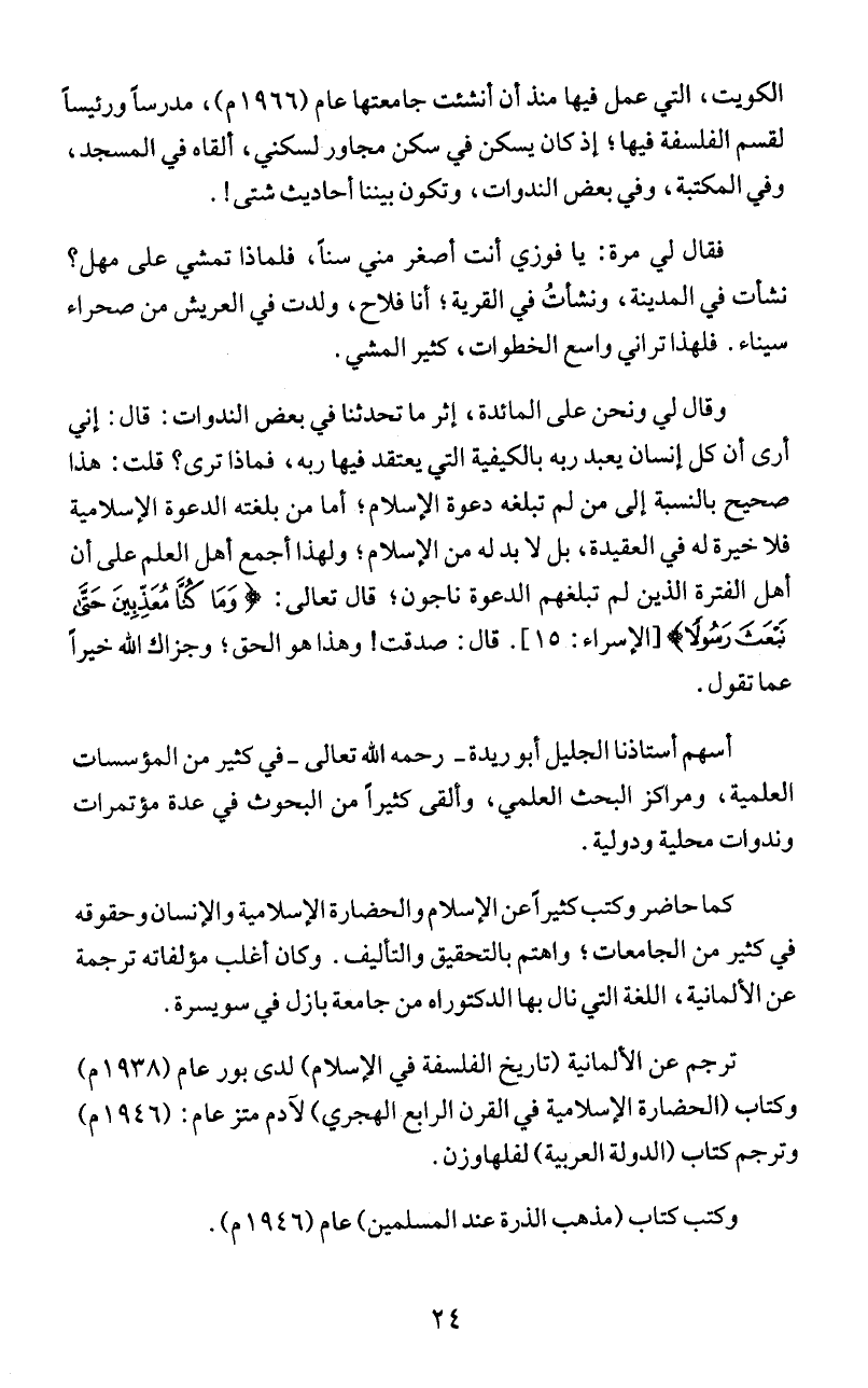 لقسم الفلسفة فيها؟ إذ كان يسكن في سكن مجاور لسكني، القا 5 في المسجد،