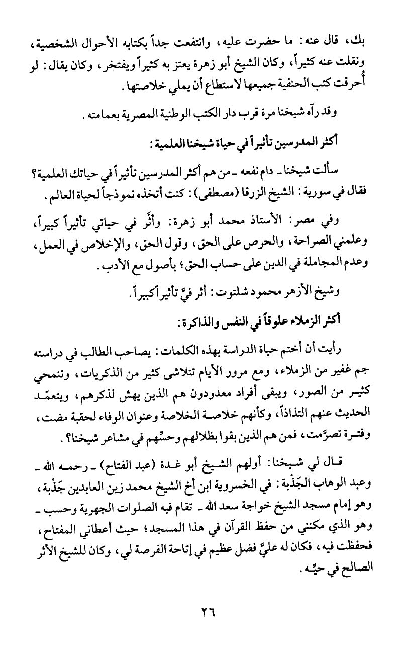 بك، قال عنه: ما حضرت عليه، وانتفعت جداَ بكتابه الأحوال الشخصية،
