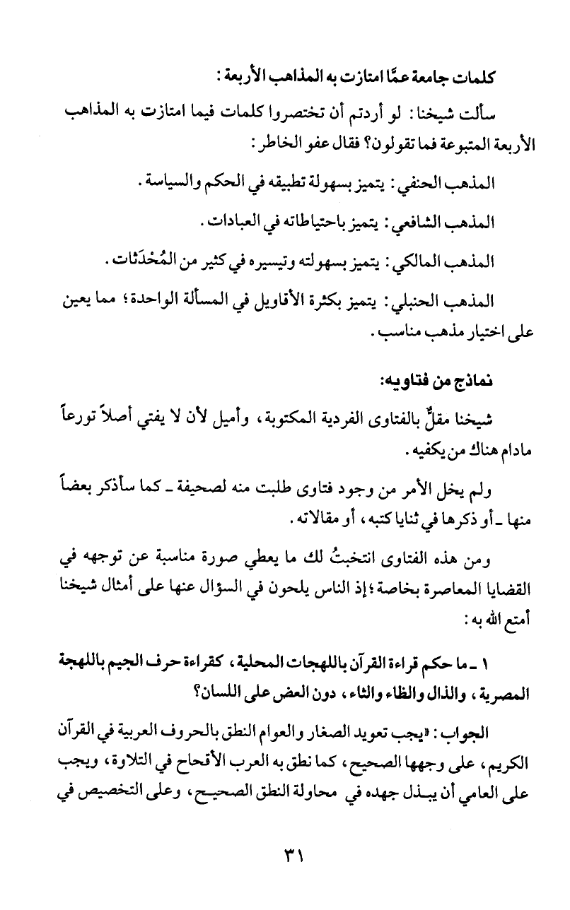 كلمات جامعة عفا امتازت به المذاهب الأربعة: