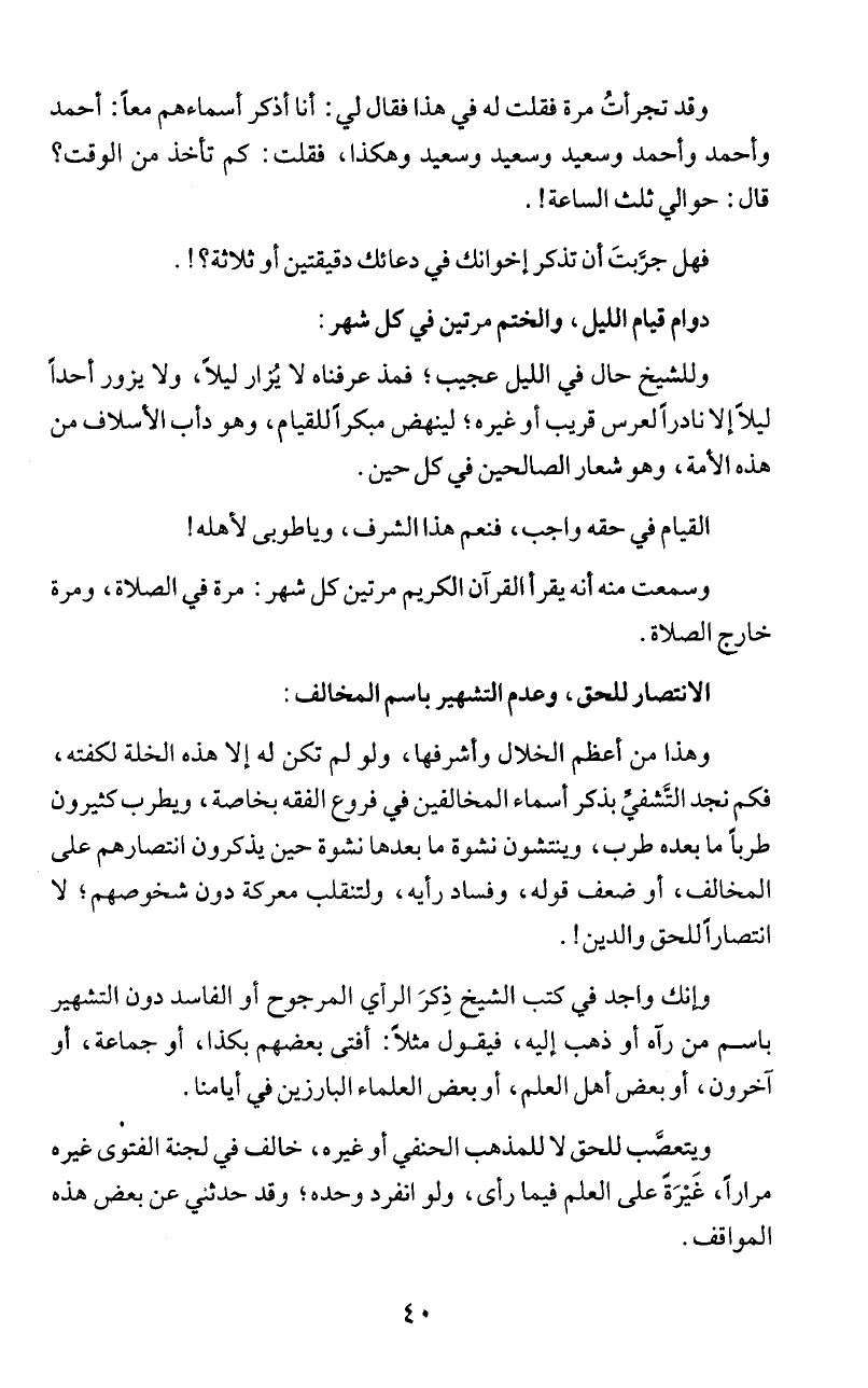 وقد تجرأتُ مرة فقلت له في هذا فقال لي: أنا أذكر أسماءهم معاً: أحمد