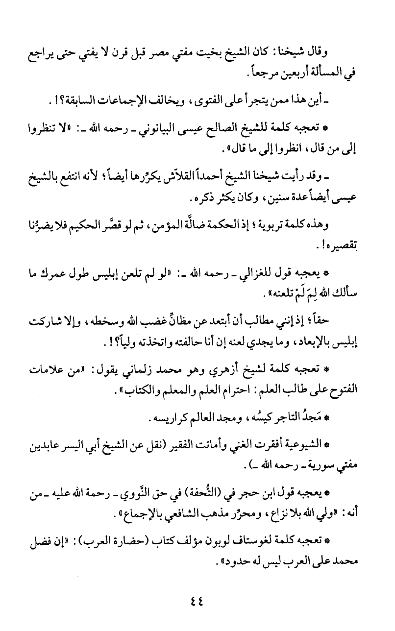 وقال شيخنا: كان الشيخ بخيت مفتي مصر قبل قرن لا يفتي حتى يراجع