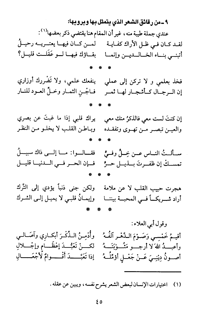 (1) اختيارات الإنسان لبعض الشعر يشرح نفسه، ويبين عن عقله.