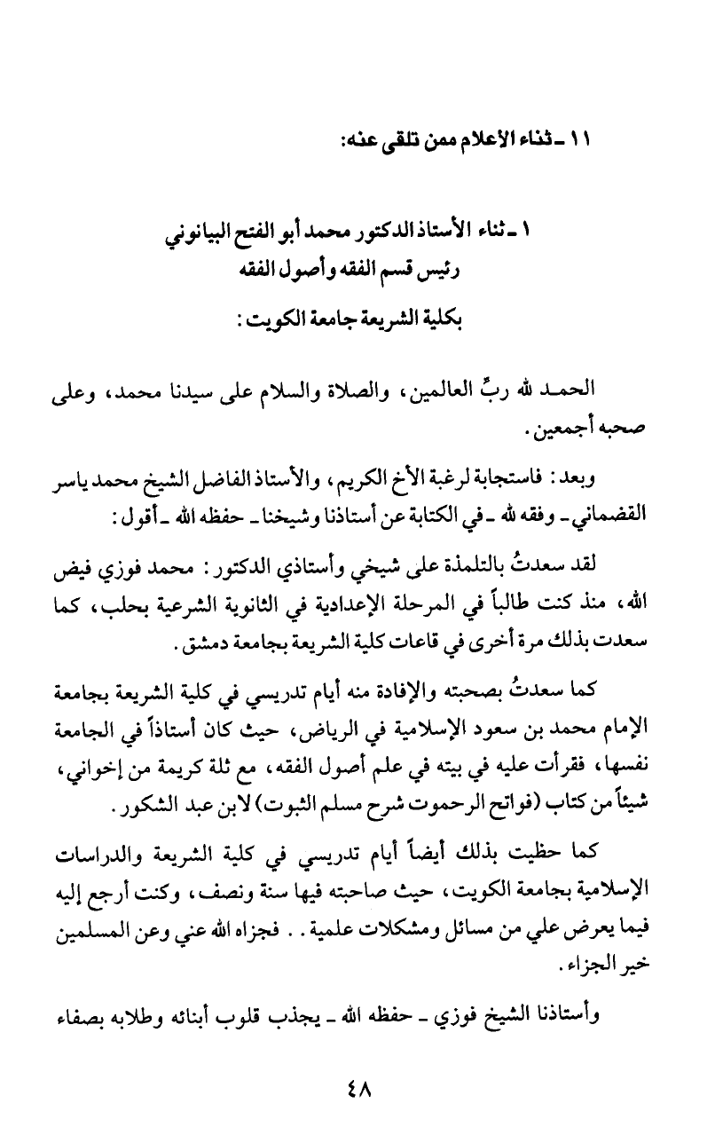1 - ثناء ا لأستاذ الدكتور محمد آبو الفتح البيانوني
