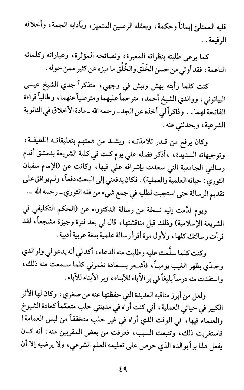 وتوجيهاته السديدة،، اذكر فضله علي يوم كنت في كلية الشريعة بدمشق أقدم