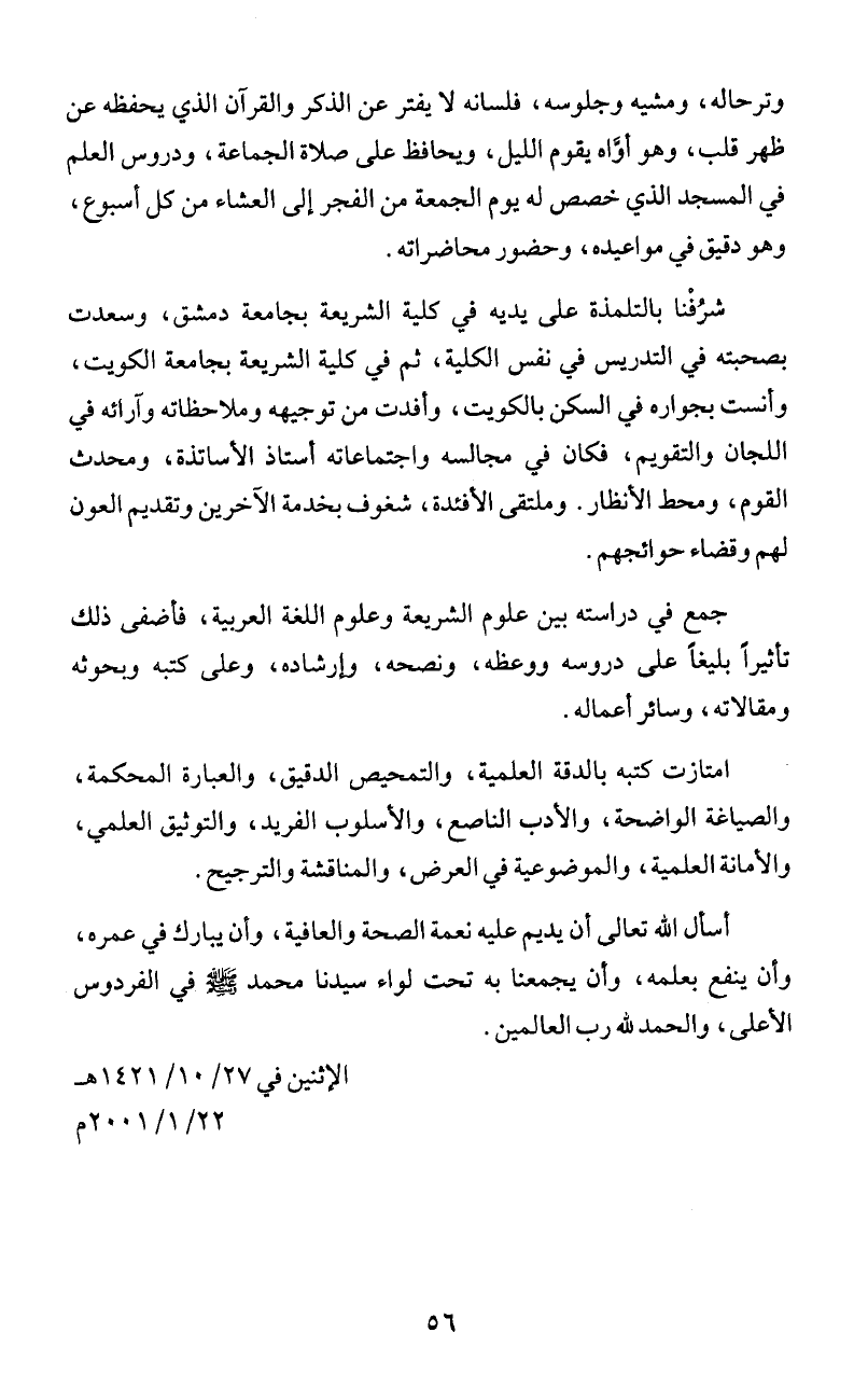 شرُفْنا بالتلمذة على يديه في كلية الشريعة بجامعة دمشق، وسعدت