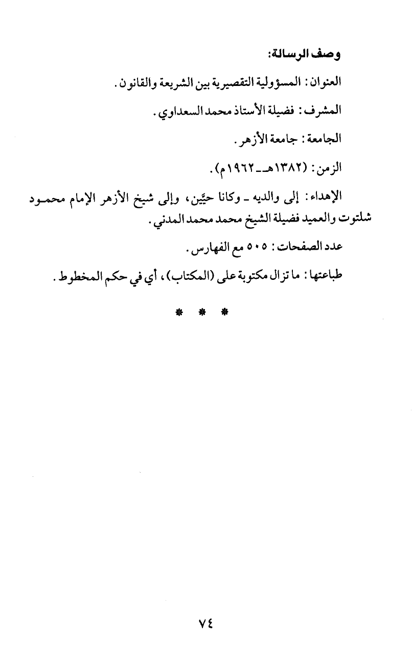 العنوان: المسؤولية التقصيرية بين الشربعة والقانون.
