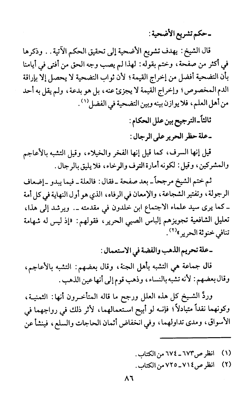 ورد الشيخ كل هذه العلل ورجح ما قاله المتاخرون أنها: الثمنية،