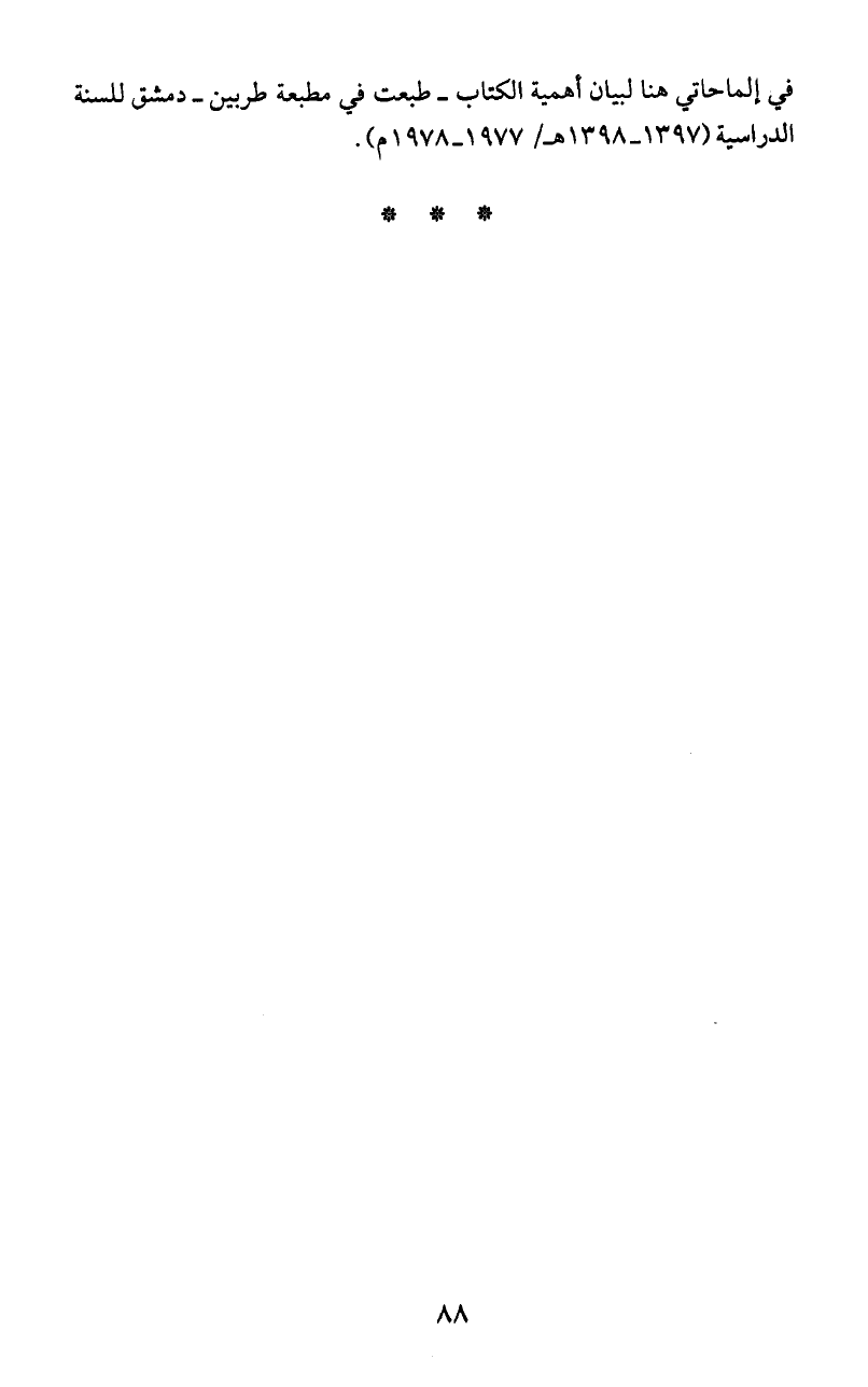في إلماحاتي هنا لبيان أهمية الكناب - طبعت في مطبعة طربين - دمشق للسنة