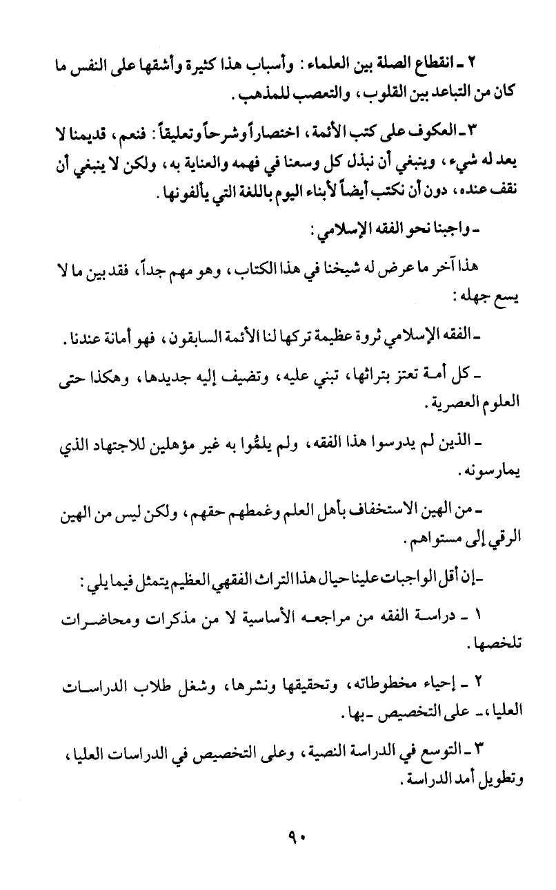 -إن اقل الواجبات علينا حيال هذا التراث الفقهي ا لعظيم يتمثل فيما يلي: