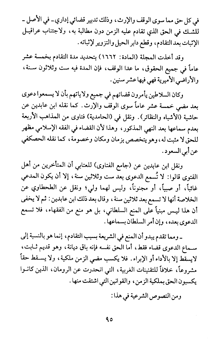 عاماً في جميع الحقوق، ما عدا الوقف، فإن المدة فيه ست وثلاثون سنة،