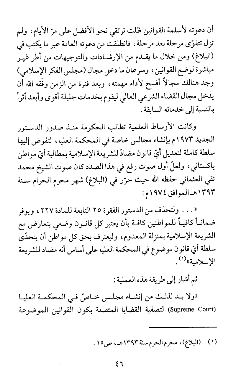 مباشرة لوضع القوانين، وسرعان ما دخل مجال (مجلس الفكر ا لإسلامي (
