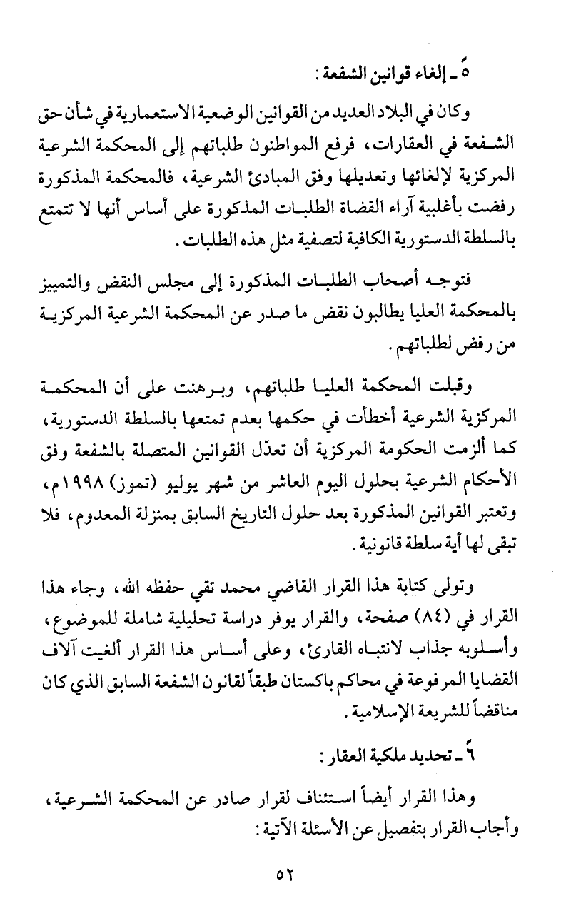 كما الزمت الحكومة المركزية أن تعدل القوانين المتصلة بالشفعة وفق