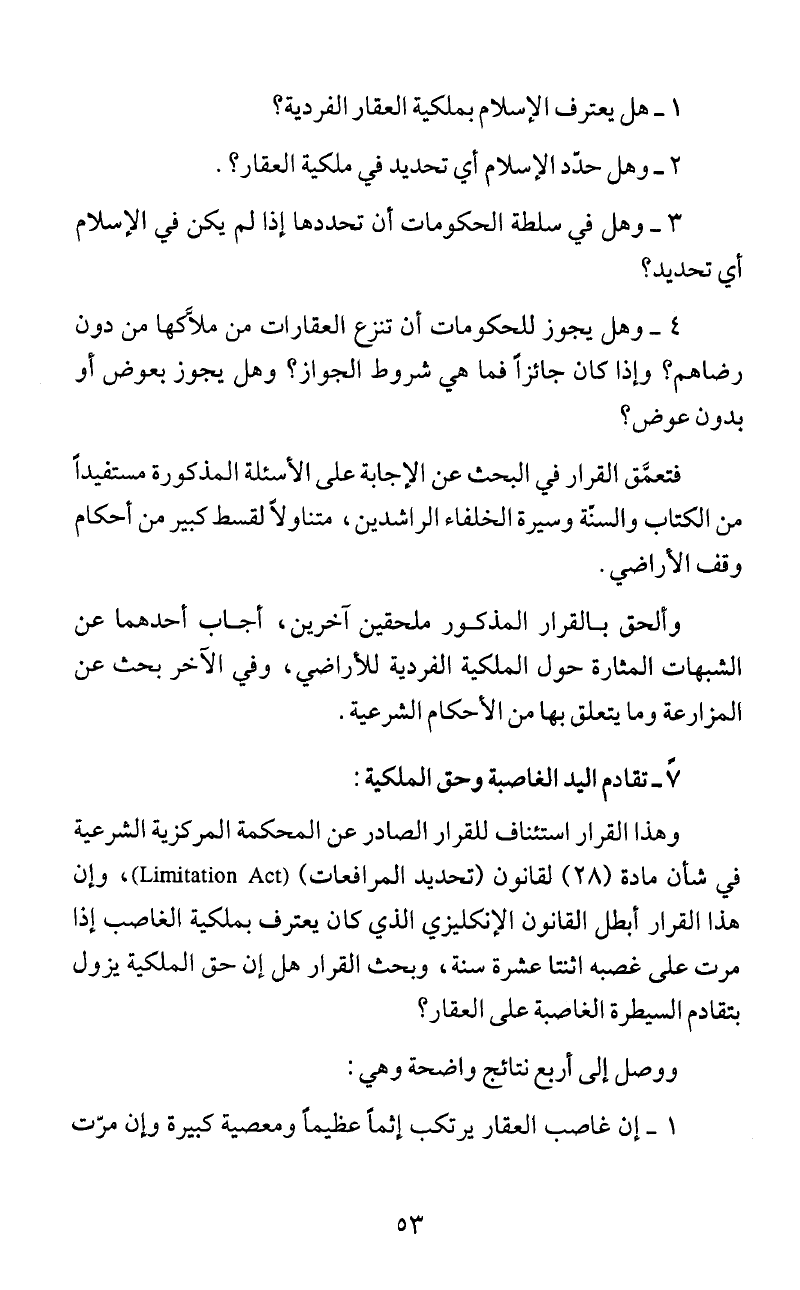 1 - هل يعترف ا لإسلام بملكية العقار الفردية؟