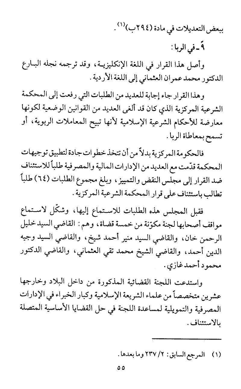 الدين أحمد، والقاضي الشيخ محمد تقي العثماني، والقاضي الدكتور