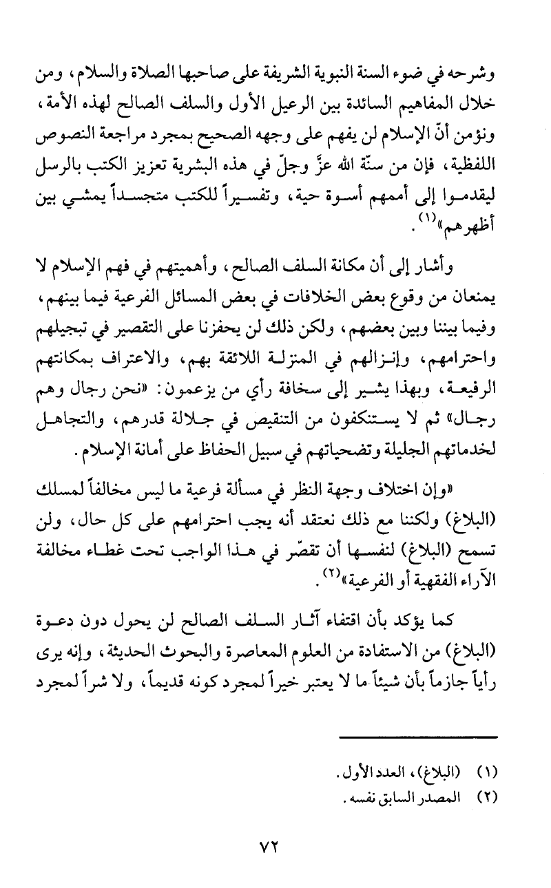 كما يؤكد بأن اقتفاء ائار السلف الصالح لن يحول دون دعوة