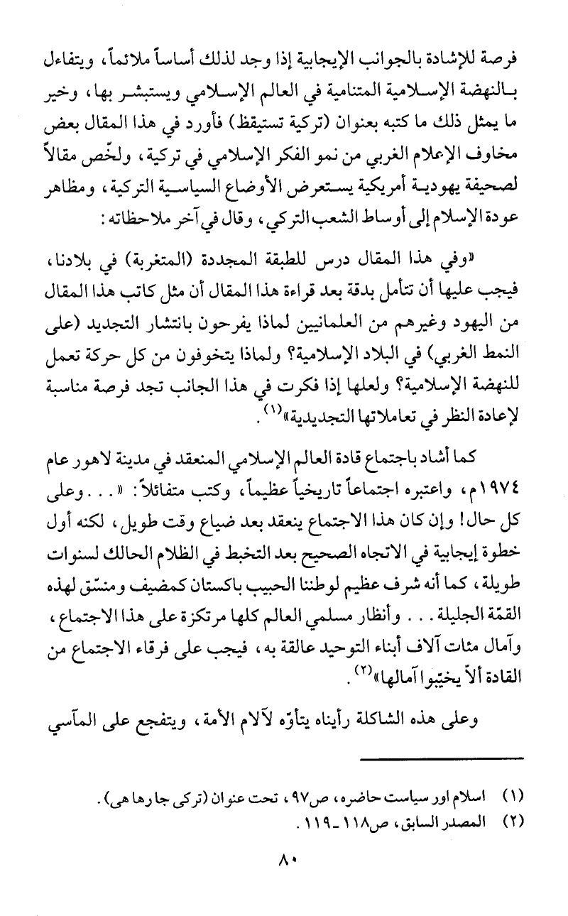 عودة ا لإسلام إلى اوساط ا لشعب التركي، وقال في اخر ملاحظا ته: