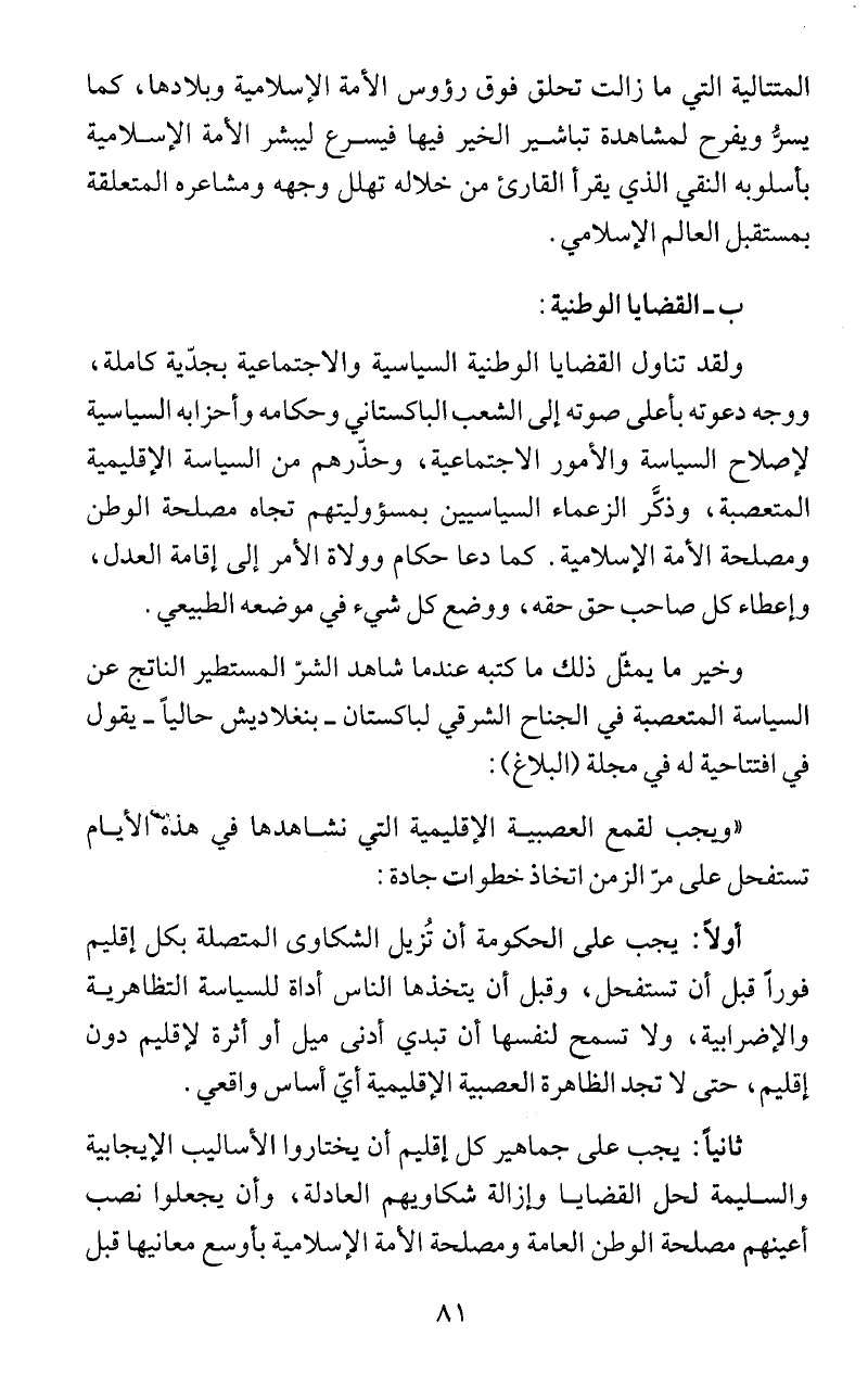 لإصلاح السياسة والامور الاجتماعية، وحذرهم من السياسة الإقليمية