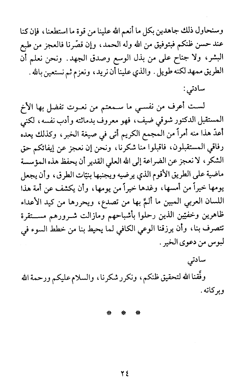 رفاقي المستقبلون، فاقبلوا منا شكرنا، ونحن إن نعجز عن إيفائكم حق