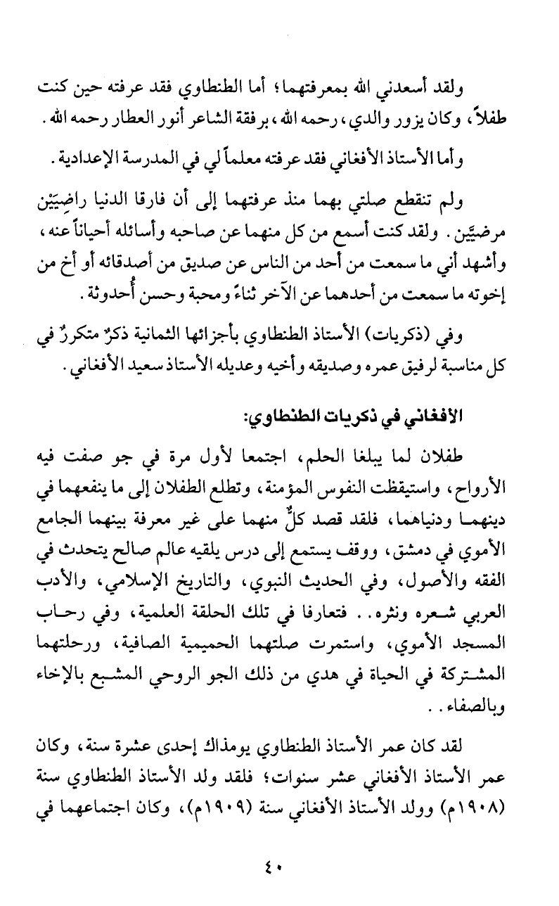 عمر الأستاذ الأفغاني عشر سنوات؟ فلقد ولد الأستاذ الطنطاوي سنة