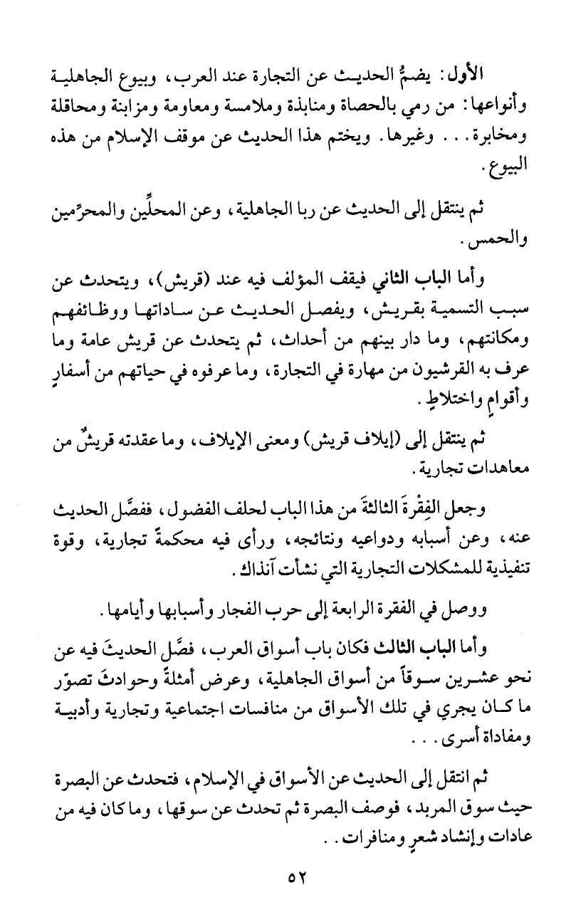 الأول: يضئم الحديث عن التجارة عند العرب، وبيوع الجاهلية