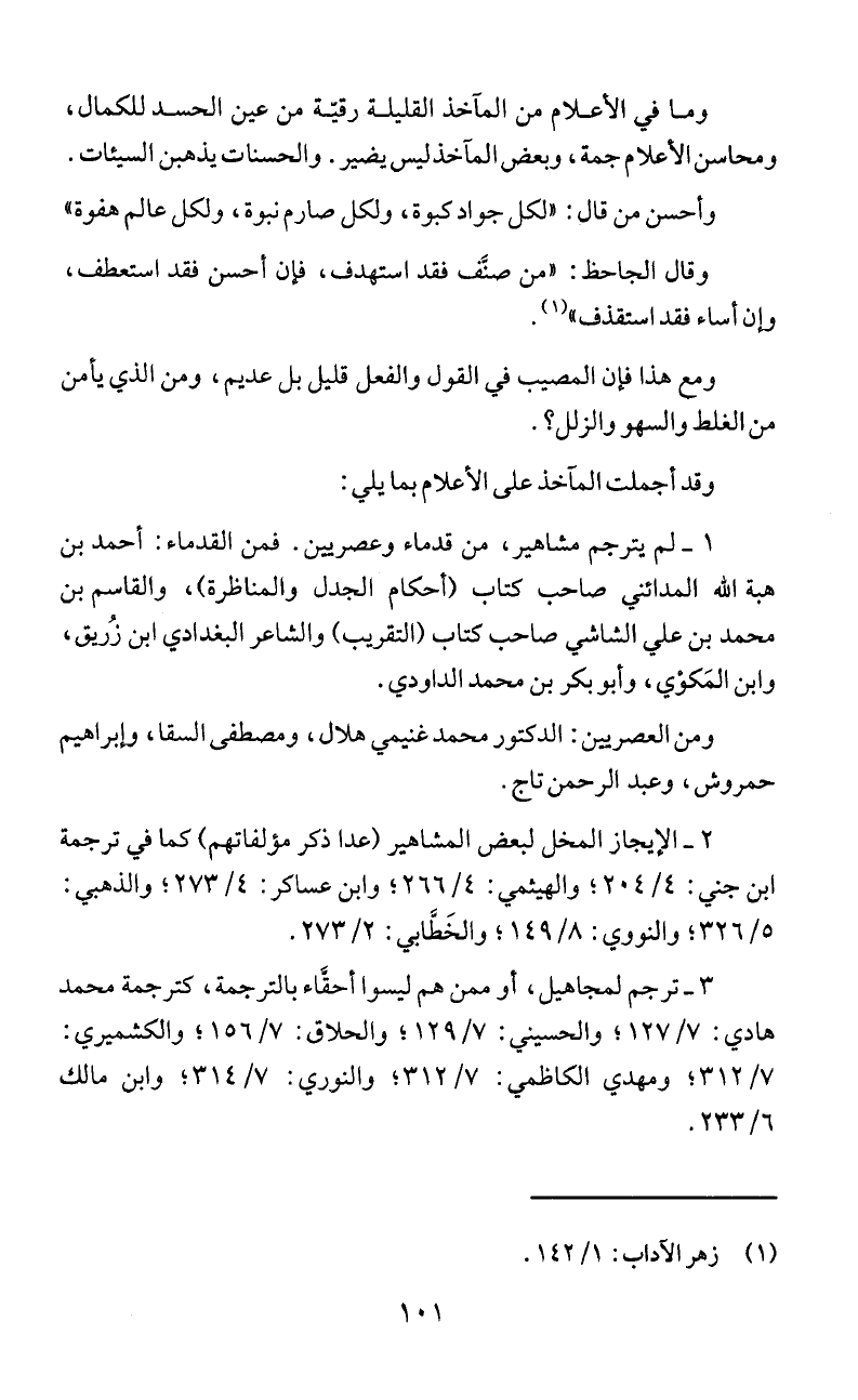 ومحاسن ا لأعلام جمة، وبعض ا لماخذ ليس يضير. وا لحسنا ت يذهبن ا لسيئات.
