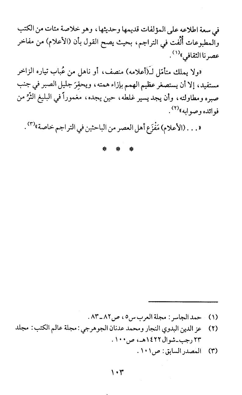 ". 0. (الأعلام) مَفْزَع أ هل العصر من الباحثيق في التراجم خاصة " (3).