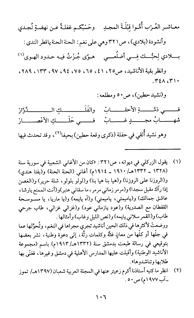 الأناشيد الوطنية) وأقبلت عليها المدارس الأهلية في دمشق وغيرها، فغئى بها