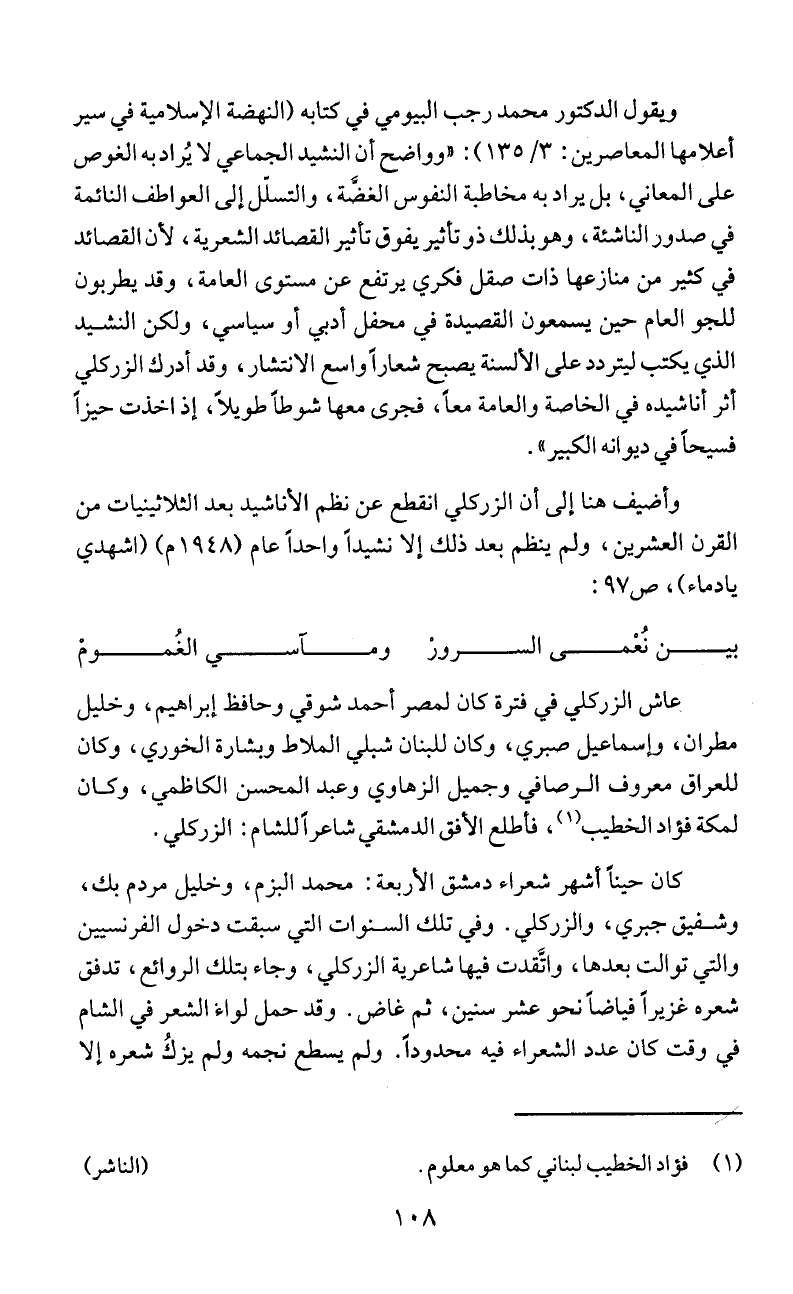وأضيف هنا إلى أن الزركلي انقطع عن نظم الأناشيد بعد الثلاثينيات من
