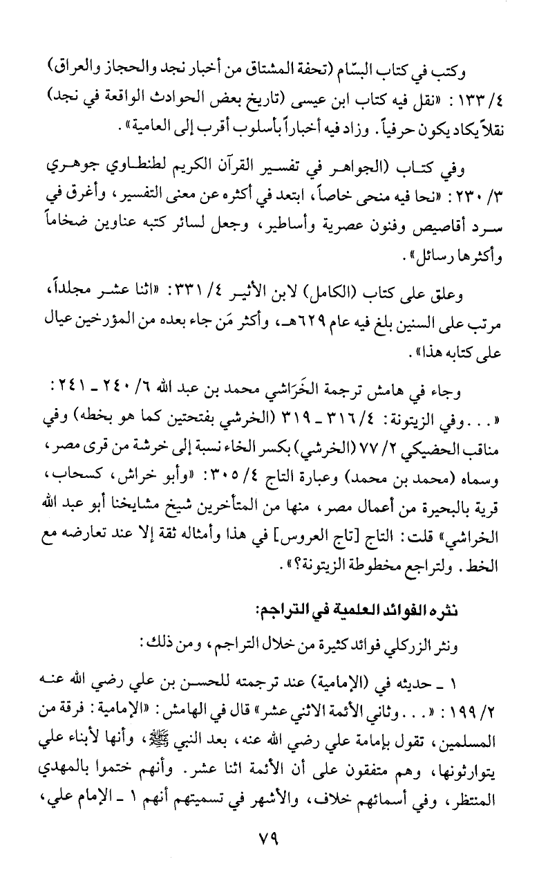 ونثر الزركلي فوائدكثيرة من خلال التراجم، ومن ذلك: