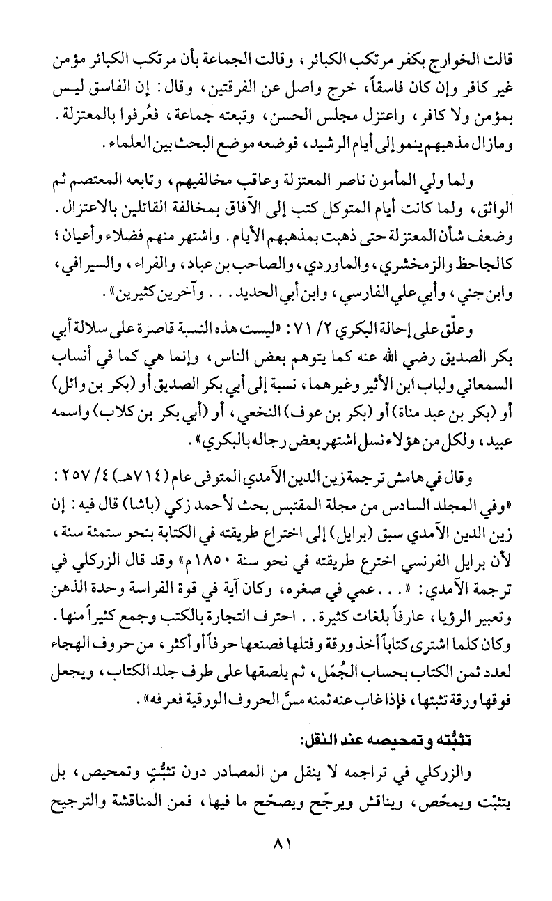 والزركلي في تراجمه لا ينقل من المصادر دون تثبُّتِ وتمحيص، بل