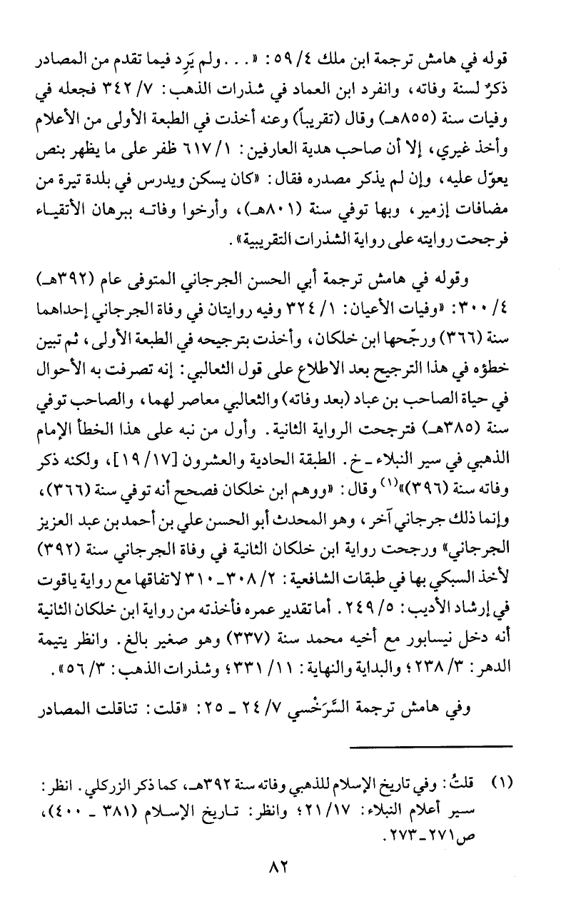 4/ 0 0 3: "وفيات الأعيان: 1/ 4 32 وفيه روايتان في وفاة الجرجاني إحداهما