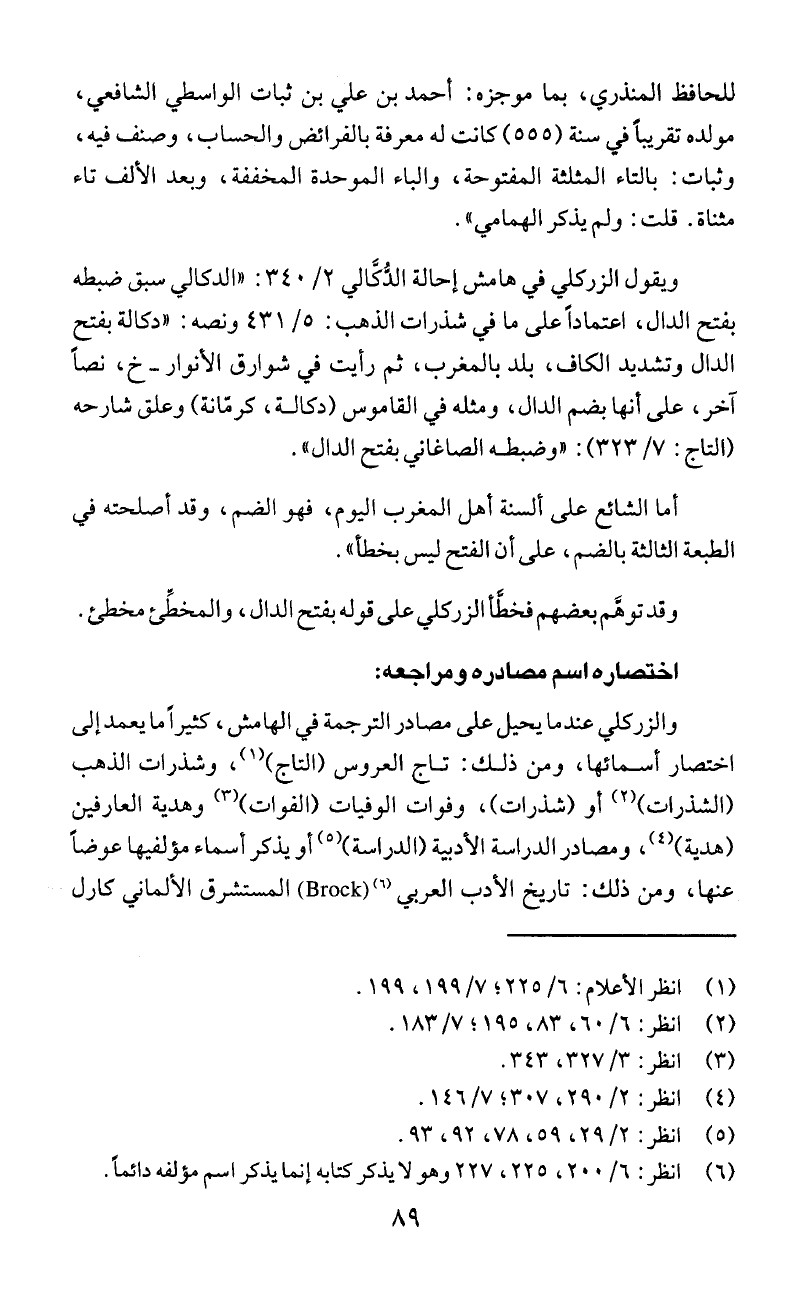 والزركلي عندما يحيل على مصادر الترجمة في الهامش، كئيرا ما يعمد إ لى