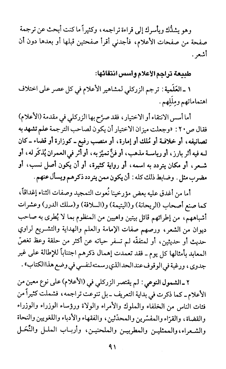 2 - الشمول النوعي: لم يقتصر الزركلي في (الأعلام) على نوع معين من