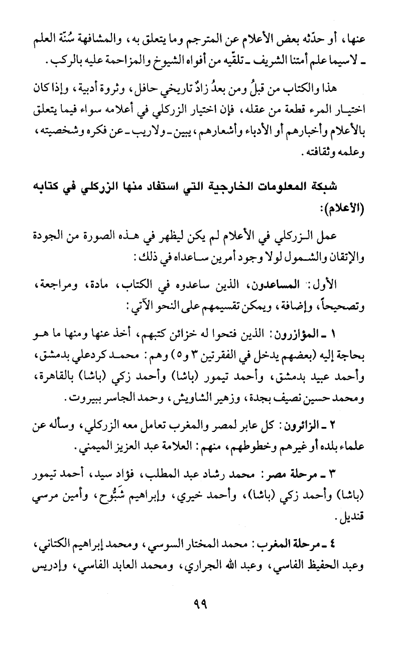 شبكة المعلومات الخارجية التي استفاد منها الزركلي في كتابه