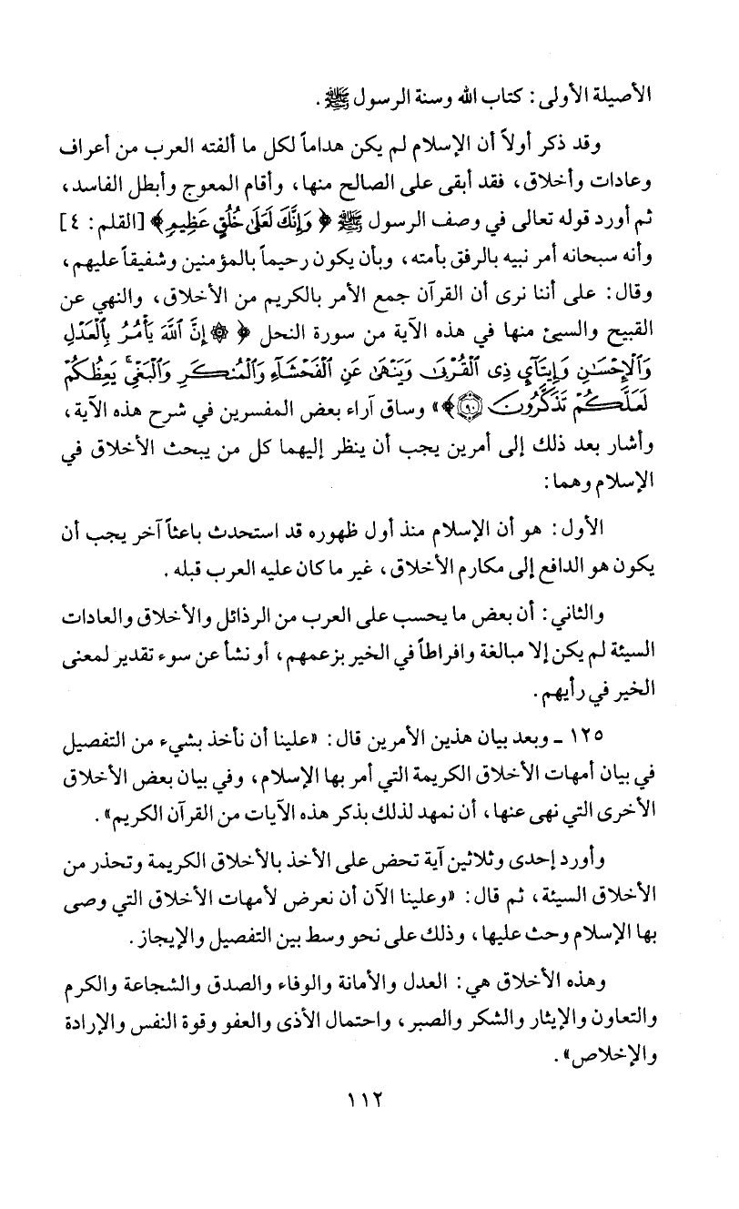 وأورد إحدى وثلاثين آية تحض على الأخذ بالأخلاق الكريمة وتحذر من