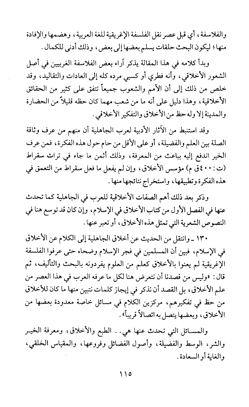 وذكر بعد ذلك اهم الصفات الأخلافية للعرب في الجاهلية كما تحدث