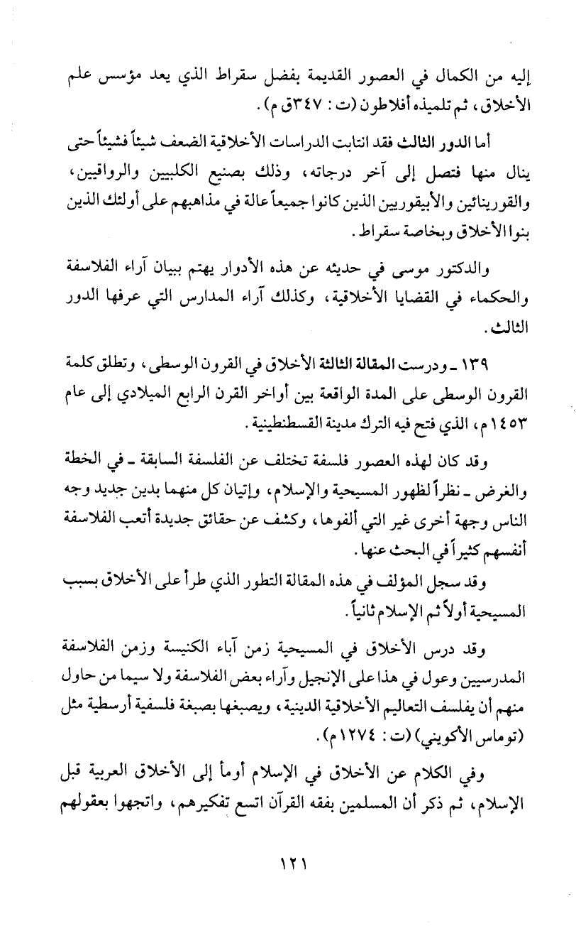 139 - ودرست المقالة الئالئة الأخلاق في القرون الوسطى، وتطلق كلمة