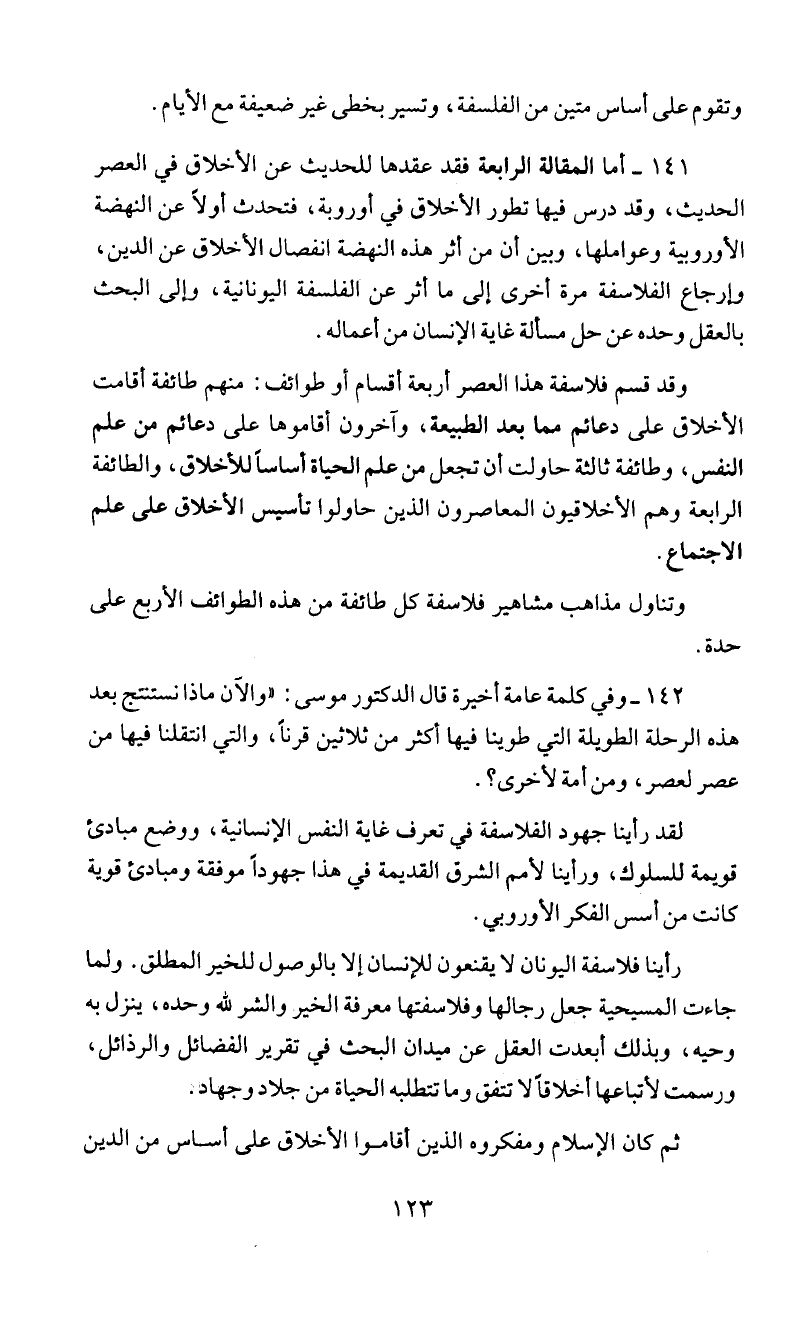 141 - اما المقالة الرابعة فقد عقدها للحديث عن الأخلاق في العصر
