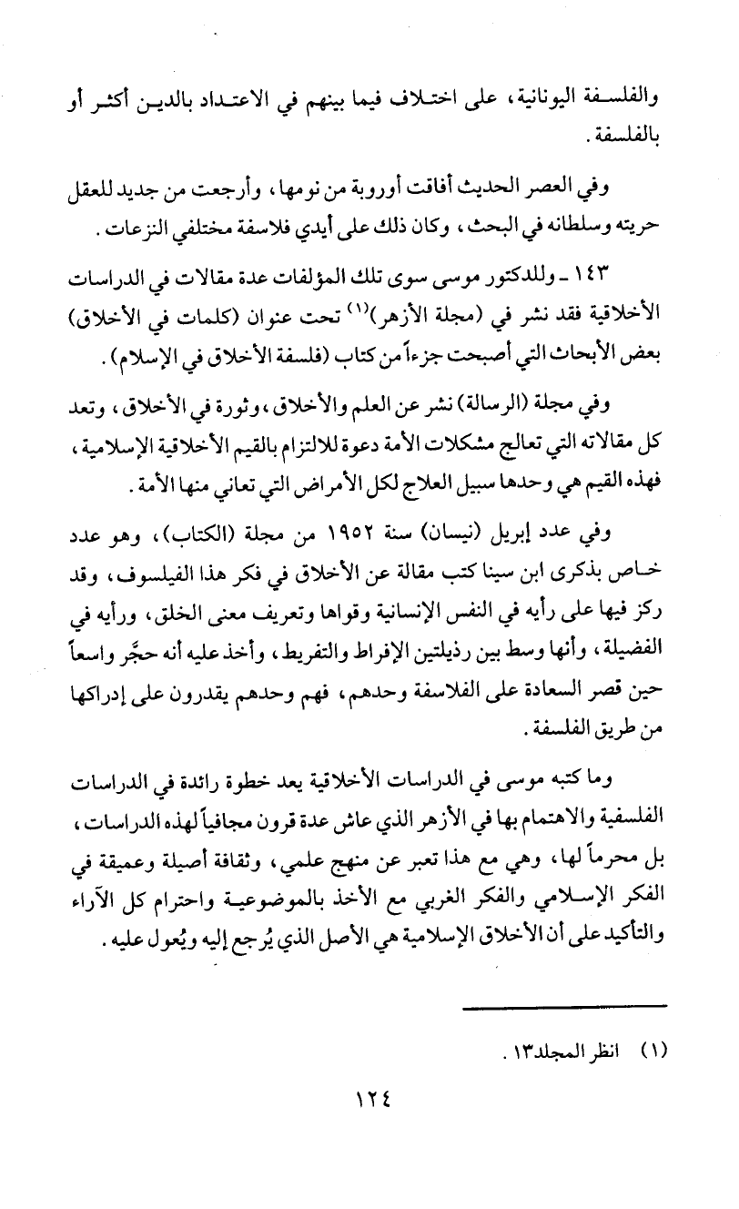 وما كتبه موسى في الدراسات الأخلاقية يعد خطوة رائدة في الدراسات
