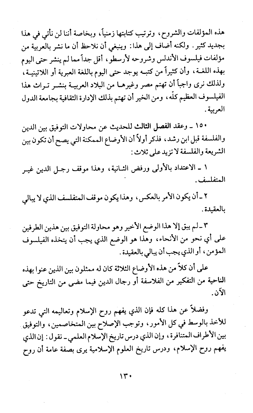 150 - وعقد الفصل الثالث للحديث عن محاولاب التوفيق بين الدين