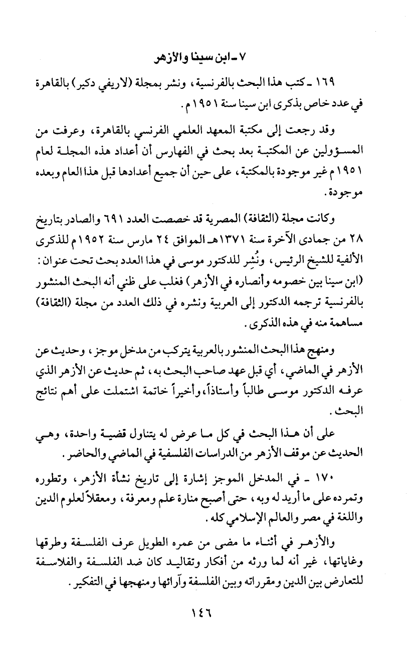 (ابن سينا بين خصومه وانصاره في الأزهر) فغلب على ظني انه البحث المنشور