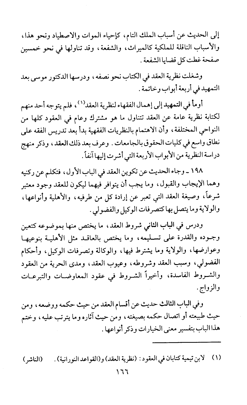 وشغلت نظرية العقد في الكتاب نحو نصفه، ودرسها الدكتور موسى بعد