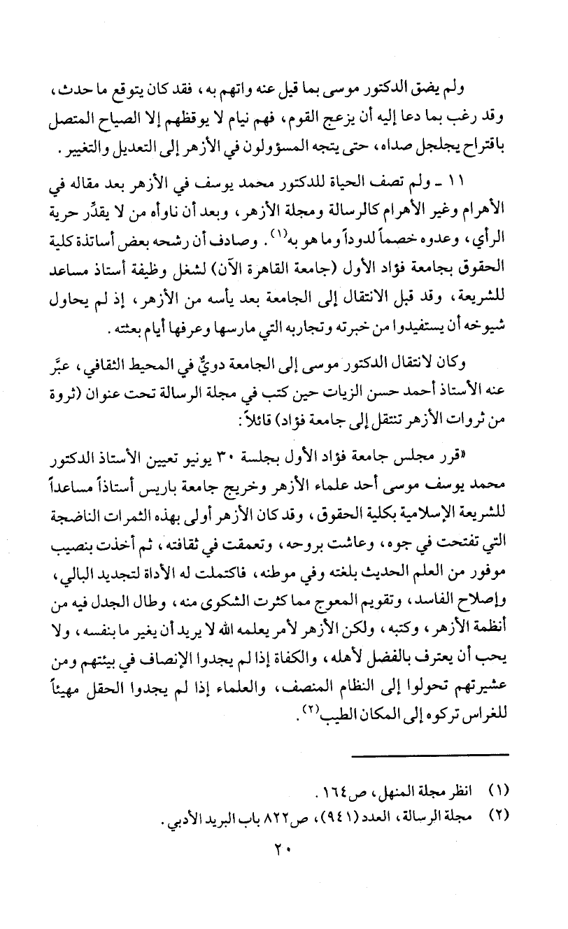محمد يوسف موسى أحد علماء الأزهر وخريج جامعة باريس أستاذاَ مساعداَ