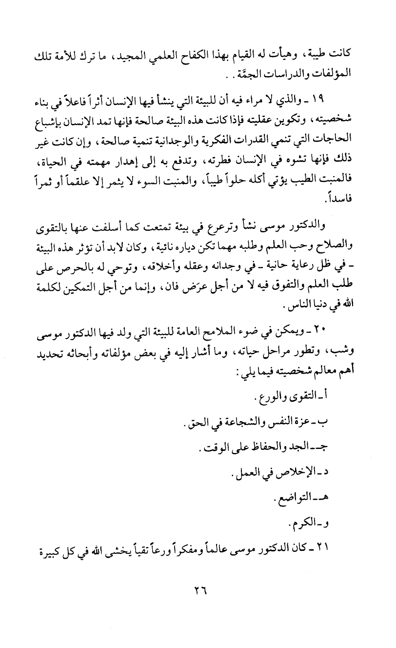 1 2 - كان الدكتور موسى عالماَ ومفكراً ورعاَ تقياً يخشى الله في كل كبيره