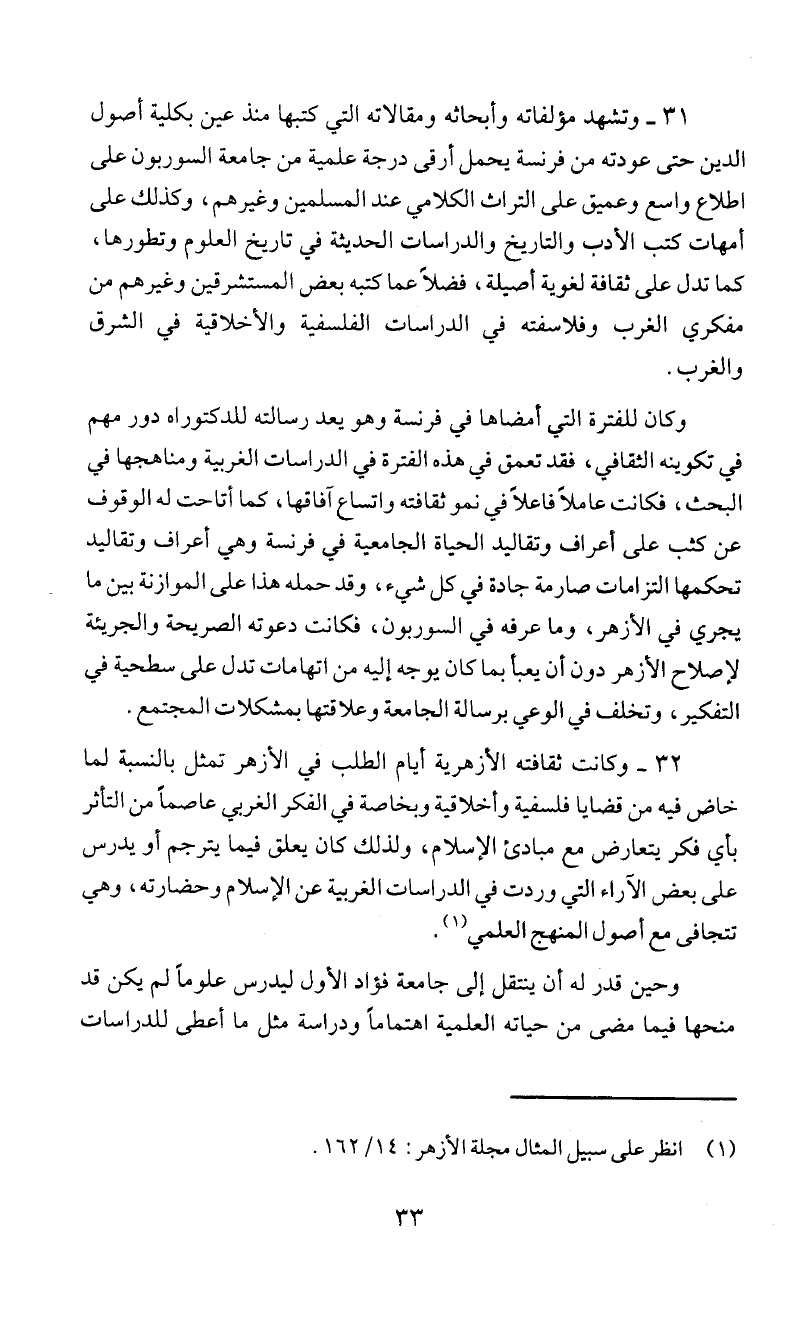 31 - وتشهد مؤلفاته وأبحاثه ومقالاته التي كتبها منذ عين بكلية أصول