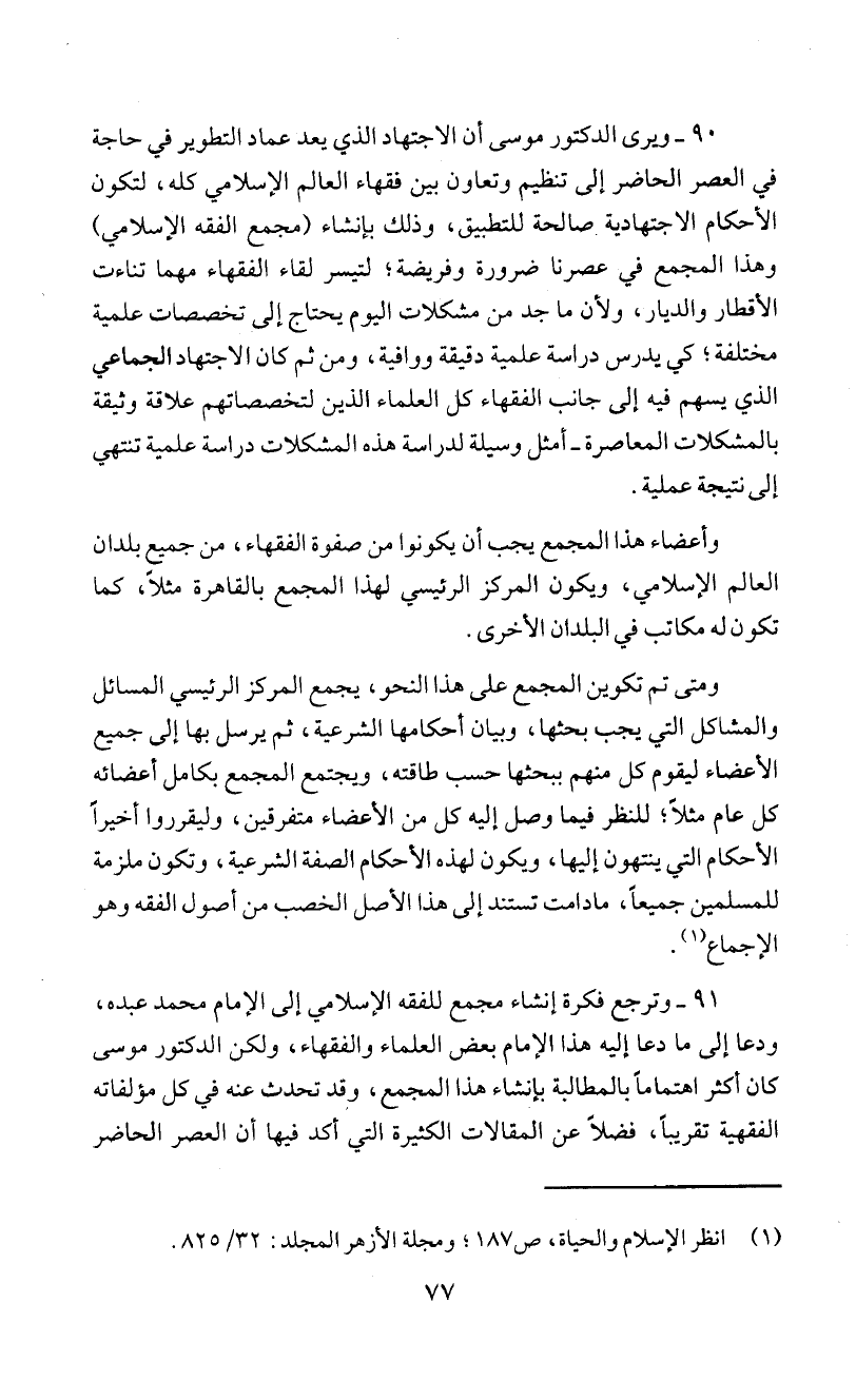 91 - وترجع فكرة إنشاء مجمع للفقه الإسلامي إلى الإمام محمد عبده،