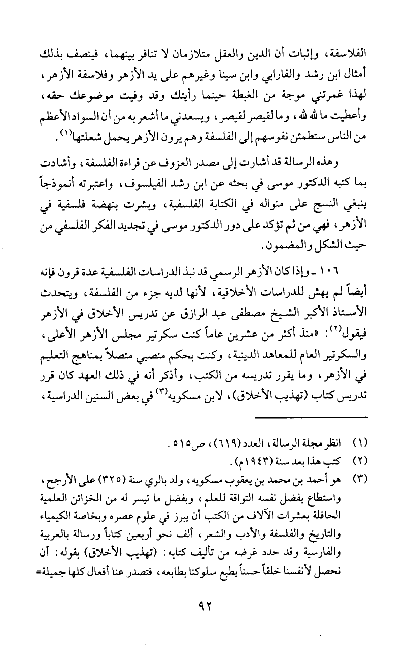 6 0 1 - وإذا كان الأزهر الرسمي قد نبذ الدراسات الفلسفية عدة قرون فإ نه