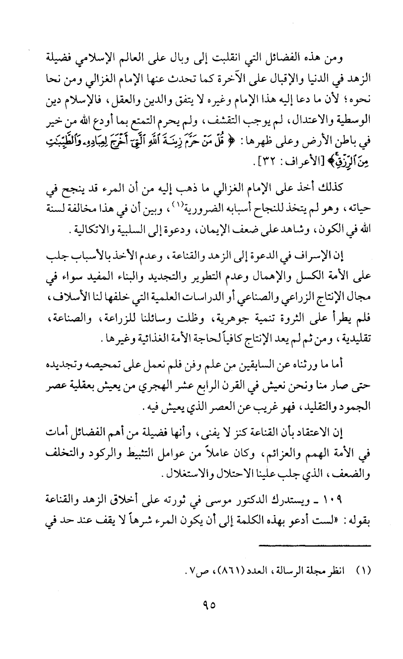 9 0 1 - ويستدرك الدكتور موسى في ثورته على أخلاق الزهد والقناعة